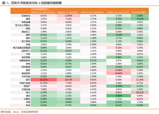 从一轮极端牛市的演绎形态看,牛市后期如果“消灭低估值、歼灭低价股”,最终各个行业对整个市场的涨幅贡献将趋于均衡,但极端情形下单一行业的涨幅贡献仍能到30%+。