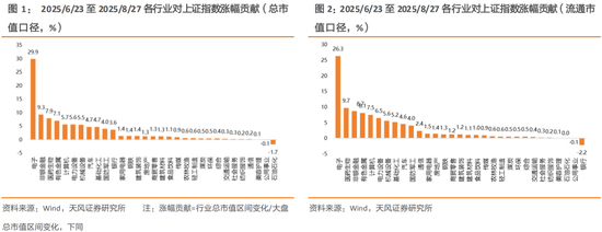 仅从总市值、流通市值口径看,电子本轮对大盘的涨幅贡献高于14-15年牛市期间涨幅最大行业的贡献。